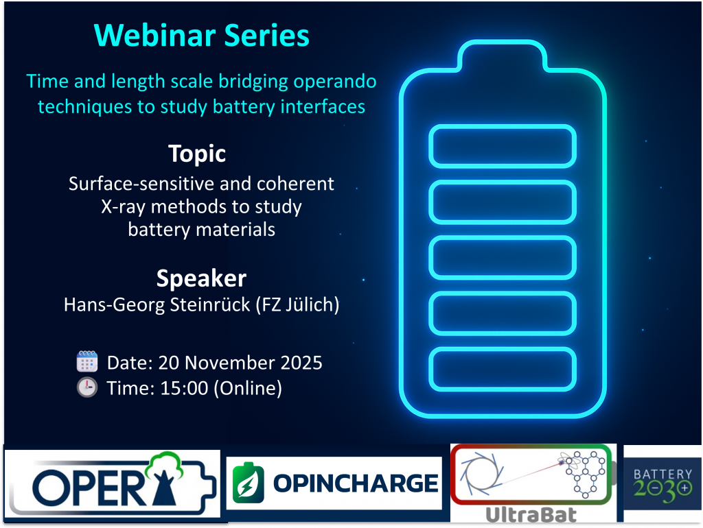 - Second webinar of the webinar Series “Time and Length-Scale Bridging Operando Techniques to Study Battery Interfaces”!